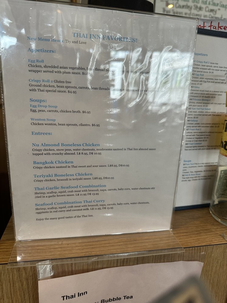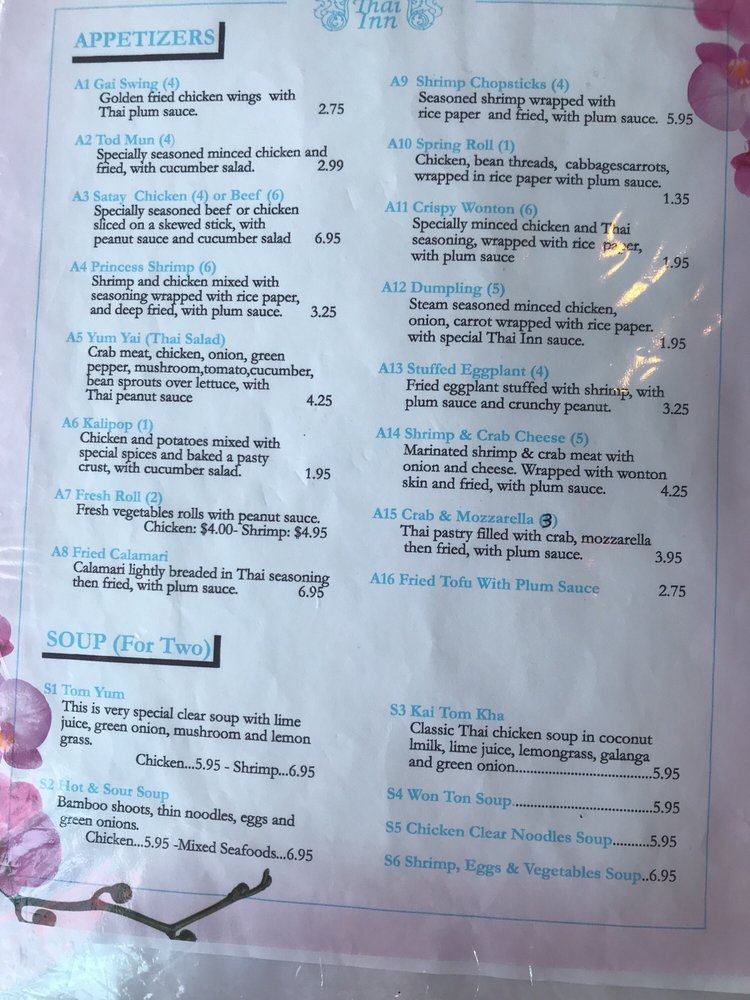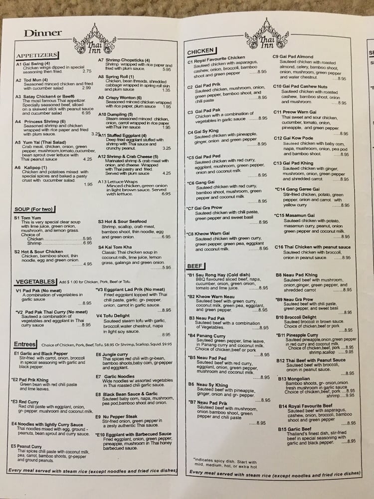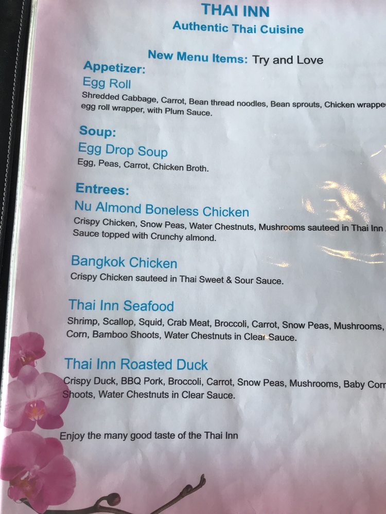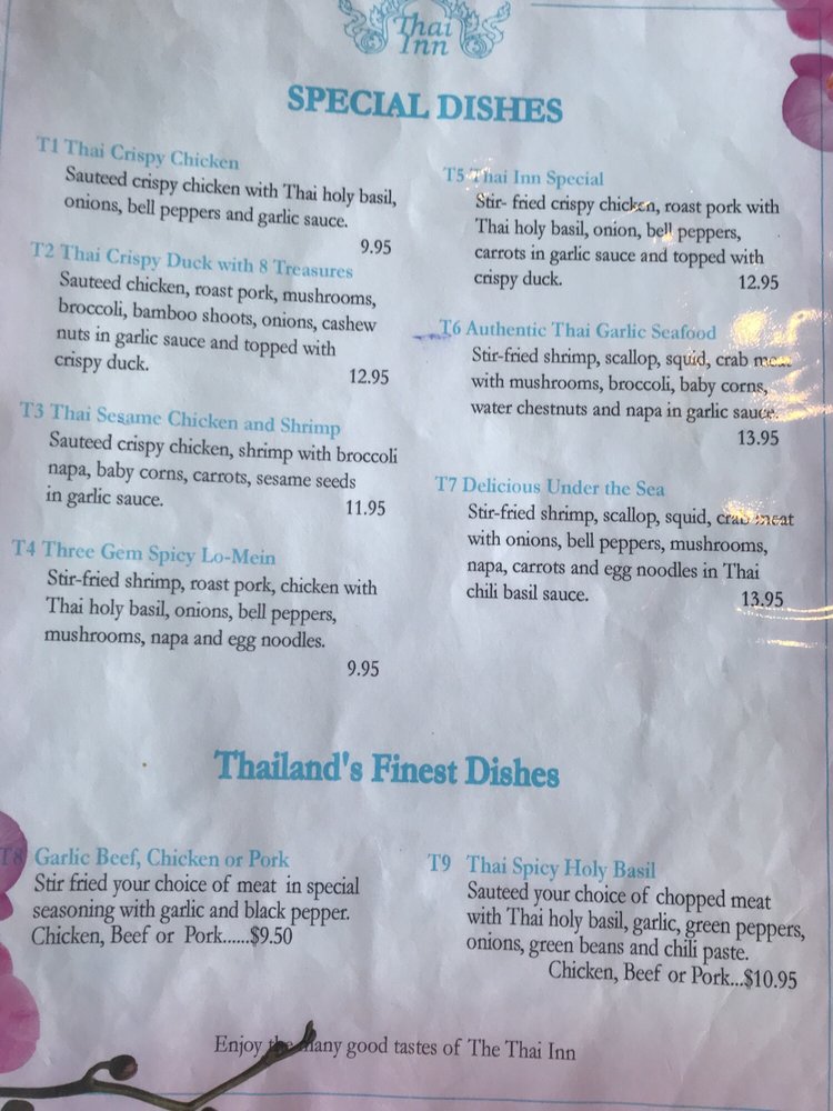 Introducing the menu at Thai Inn, located in Rochester Hills, MI, this casual yet quiet spot offers a range of Thai delicacies. From savory appetizers like Tod Mun and Stay Beef to flavorful soups like Hot and Sour Chicken and Hot and Sour Seafood, Thai Inn has something for everyone. Vegetarians can indulge in options like Eggplant Lad Prik and Pad Pak Thai Curry. The reviews speak for themselves, with customers praising the delicious Gang Gai and the generous portion sizes. With exceptional service and high-quality food, Thai Inn is a hidden gem that keeps customers coming back for more. Don't miss out on their must-try dishes like Garlic Noodles with Chicken, Curry Noodles, and the famous Crab Rangoon. Enjoy the best Thai cuisine in Rochester Hills at Thai Inn.